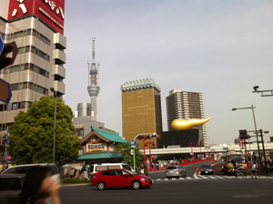建設中のスカイツリーと黄金のアレがデュエットする、「浅草」~♪