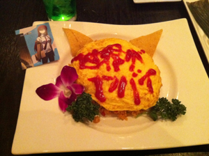 唐揚げやハニトーに目移りしつつ、頼んだのはフェイリスのネコミミオムライス。