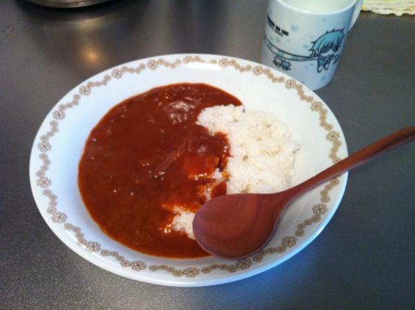 ラメントカレー皿とシキアキマグっていうそぐわない食器で食べました。